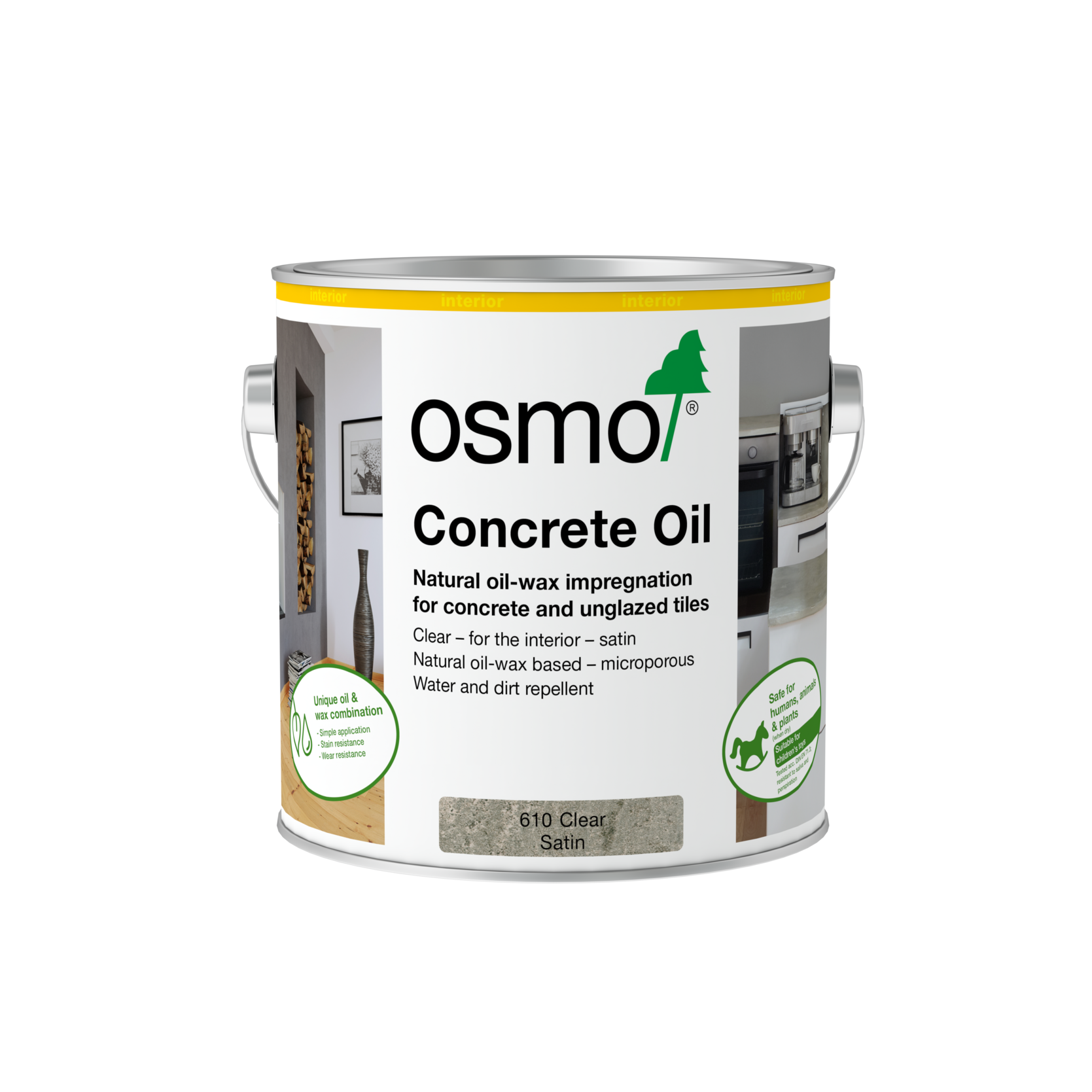 Can be used on interior concrete floors in the kitchen and bathroom, as well as tabletops and window sills