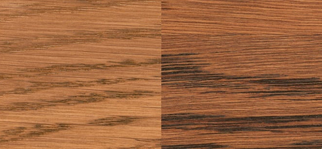 Osmo Oil Stain is the recomended oil stain for colouring timber flooring. It is a transparent (one coat) or intensive (2 coats) finish, which requires one or two top coats of Polyx Oil. The image below is of 3514 Graphite, showing the transparent and intensive effect.