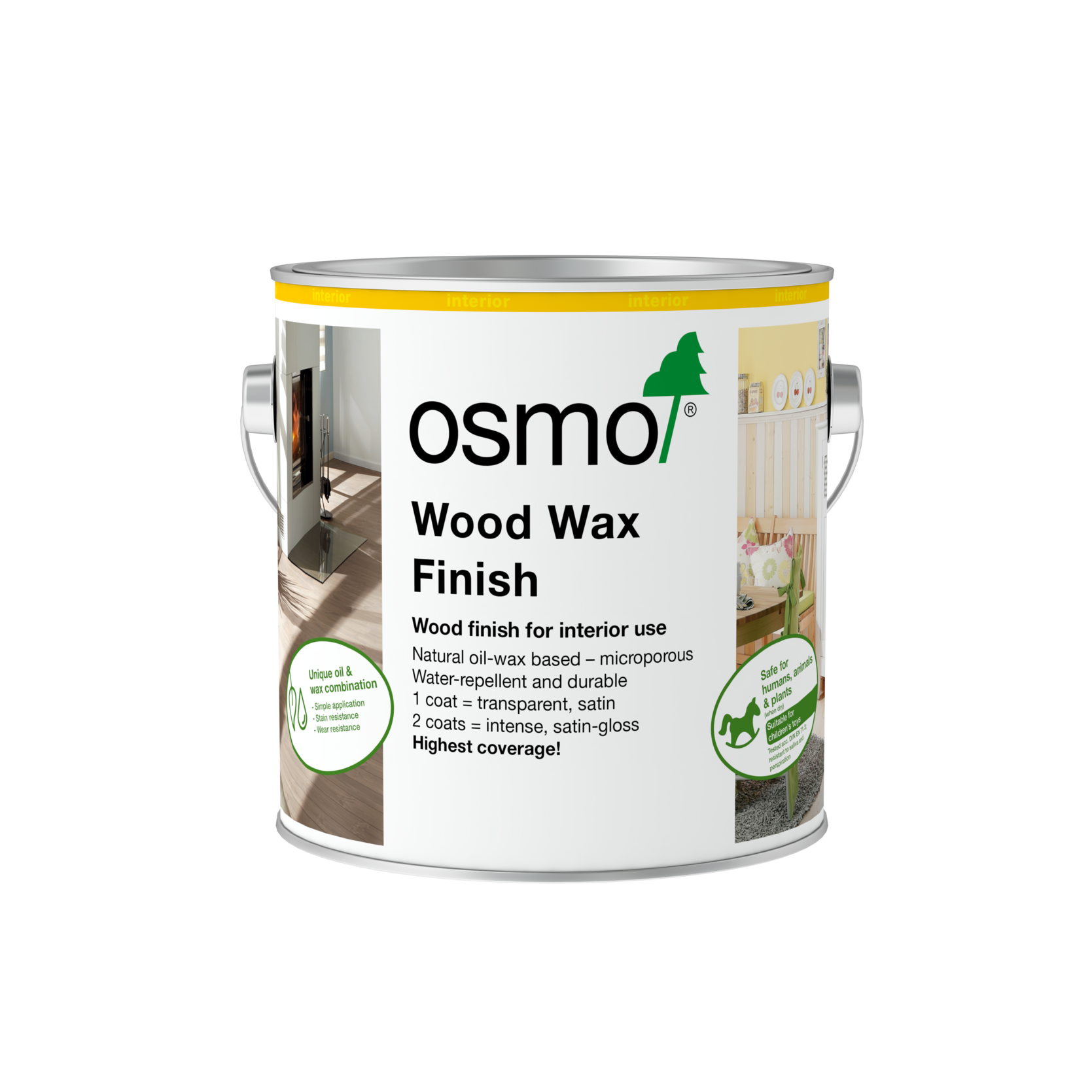 Osmo Wood Wax Finish Transparent is a satin, transparent, coloured wood finish, which combines all the advantages of oils and waxes in one unique product. It can be used on timber furniture, panelling, sarking, architraves, doors, cabinetry and joinery.
